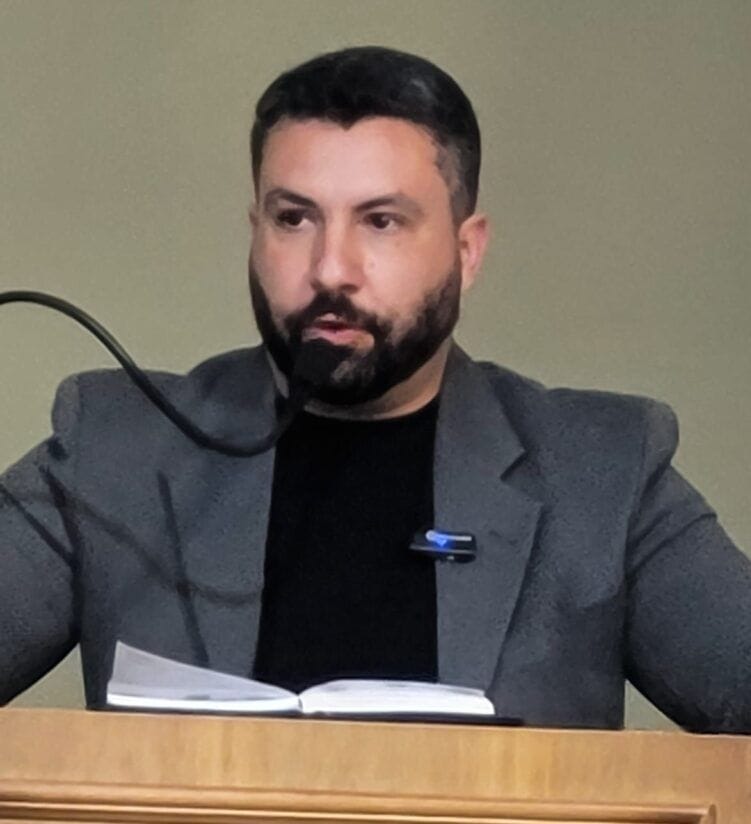 Vereador Antônio Peixoto (PSD) na presidência em determinado momento na sessão de hoje pela manhã. Na tribuna, o vereador Cauê Fuhro Souto (PV). Fala sobre assunto de seu…