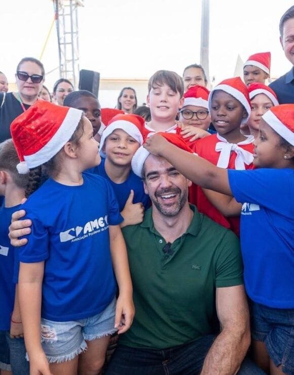 Descontração e alegria do governador Eduardo Leite (PSD) hoje, em Encantado. Ele foi fazer a entrega de casas para família atingidas pela enchente do ano passado, no rio…