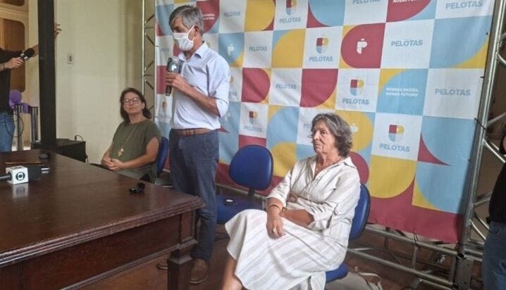 Iniciada coletiva na prefeitura. Prefeito Fernando Marroni (PT) está usando máscara. Presença da secretária da Saúde, Angela Vitória e Vera Neto, diretora de Vigilância em Saúde, que engloba…