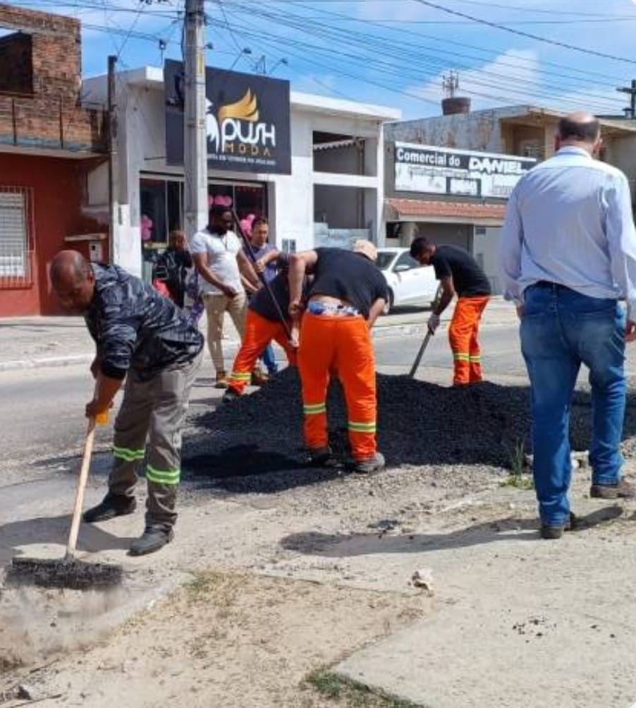 Equipes da Secretaria de Obras e Pavimentação atuam na recuperação de trechos em artérias do Areal e Três Vendas.