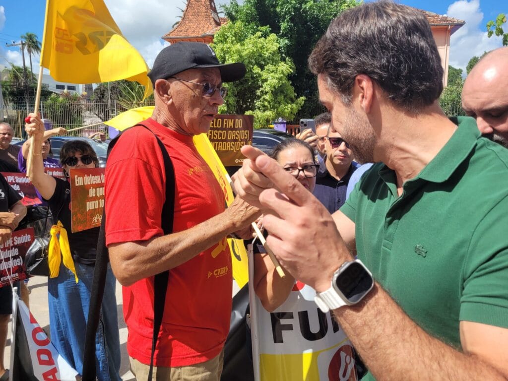 Na calçada, foi recebido por cerca de 30 representantes do Cpers/Sindicato. Uma faixa e cerca de 15 bandeiras acompanharam os gritos de “fora Lrite”, “fora Leite”. Eduardo seguiu em frente.