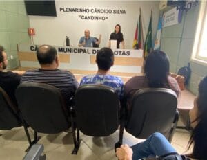 Em andamento na Câmara de Vereadores o Congresso Municipal do Cidadania. Pauta sendo cumprida com a coordenação da presidente Samira Marques da Silveira e do secretário Roger Lemões.