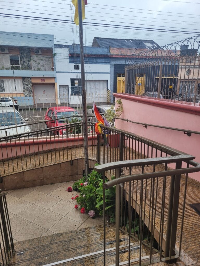 Bandeira LGBT hasteada na frente da entrada do prédio da Câmara