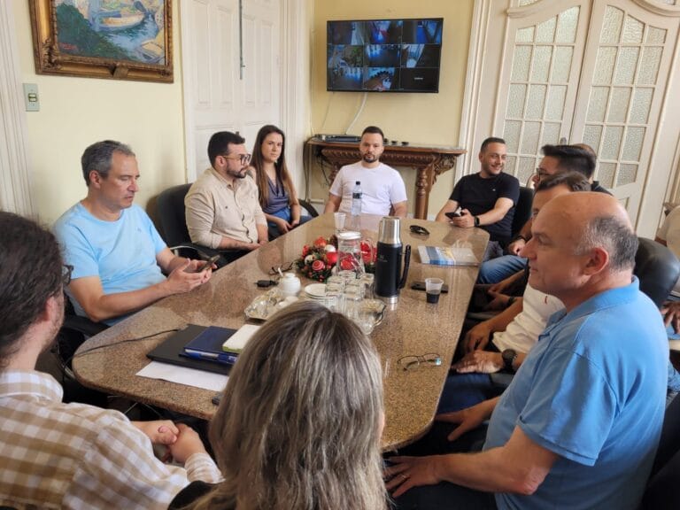 Iniciando reunião no gabinete do prefeitura com representantes do governo e PSB. Encontro coordenado pelo secretário de Planejamento, Salvador Martins (PT). Prefeito Fernando Marroni (PT) está em agenda externa. Presidente do PSB estadual, José Stédile não veio. O vereador César…