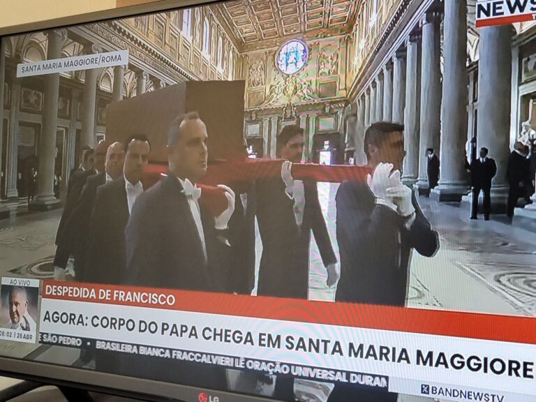 Corpo do Papa Francisco está sendo sepultado, neste momento, na Basílica de Santa Maria Maior, no centro de Roma. A cerimônia é restrita e não tem presenças de autoridades e transmissão pela televisão. A imprensa romana aponta a participação e…