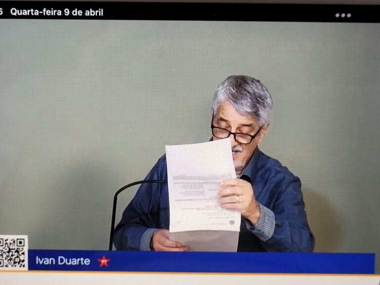 Voltando ao estopim. Vereador Hugo Miori (PP) na tribuna. Relata sua situação como música e fala em harmonia entre os vereadores. Às 9h46min, começam a ser ouvidos borburinhos e falas mais exaltadas. Estava iniciado o bate-boca entre os vereadores Jurandir…