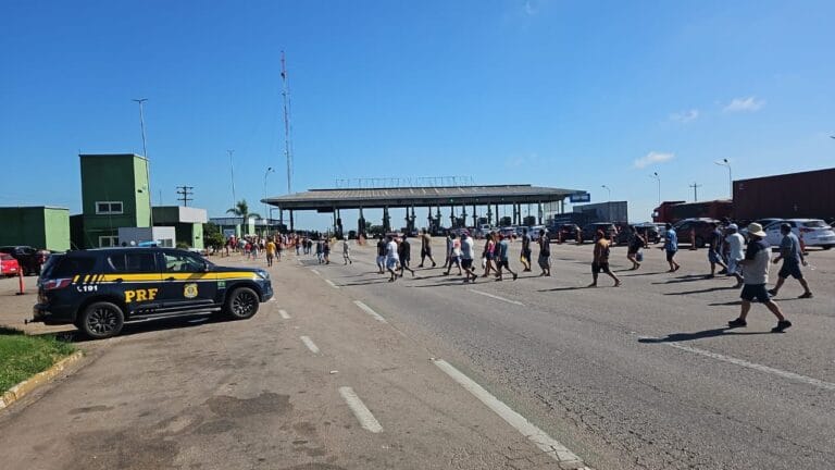 Polícia Rodoviária Federal informa: cerca de 150 pescadores fazem manifestação neste momento, na praça de pedágio em Capão Seco, BR-392, em Rio Grande. O motivo é reivindicar aumento no valor pago por família pela cota mensal da tainha. Até agora…