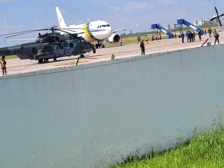 Já no Aeroporto Internacional João Simões Lopes Neto a espera da comitiva do presidente Lula(PT), que, de imediato, deslocar-se-á para Rio Grande. Aparato de segurança no dispositivo. São agentes da Polícia Federal, da Polícia Rodoviária Federal, com viaturas e motos,…