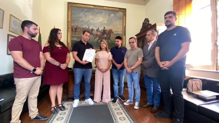 Entregue na Câmara de Vereadores de Pelotas a Mensagem 007/2025 oriunda do Poder Executivo. Trata da proposta de reajuste de 6,27% ao Magistério municipal. Ato contou com a presença da secretária de Governo, Míriam Marroni(PT) do secretário adjunto, Pedro Jaime…