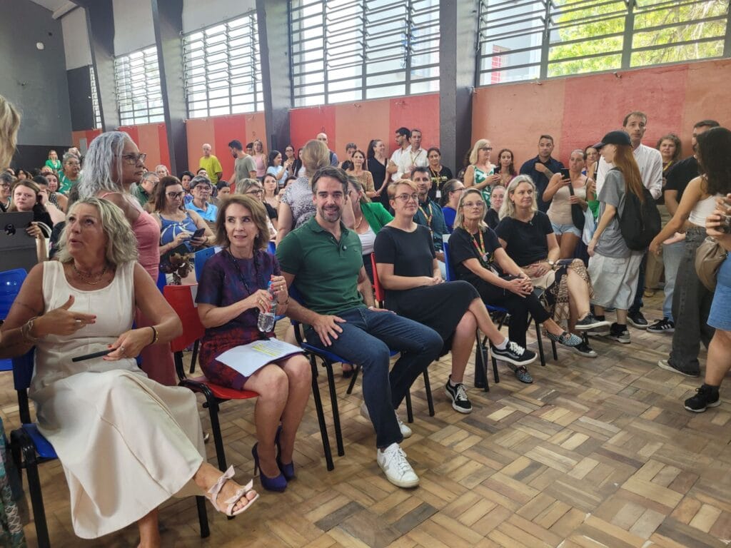 Presenças, além de Eduardo Leite, das secretárias de Educação, Raquel Teixeira e de Obras Públicas, Isabel Matte. Também da secretária de Assuntos Institucionais, Paula Mascarenhas, a secretária interina de Educação, Vitória Feldens. Presentes os vereadores Carlos Júnior (PSD) e Antônio Peixoto (PSD) e Henrique Pires, titular do Escritório do Rio Grande do Sul em Brasília.