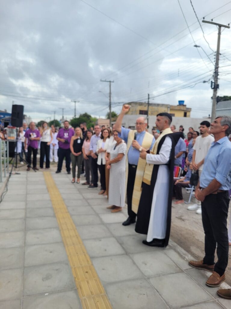 Na solenidade de inauguração, hoje pela manhã, presenças do Arcebispo e Chanceler da UCPel, Dom Jacinto Bergmann,reitor José Carlos Pereira Bachettini Júnior, do prefeito Fernando Marroni (PT), do diretor do Hospital Universitário São Francisco de Paula e coordenador do curso de Medicina, Caio Lopes, das secretárias municipais da Saúde, Angela Vitória (PT) e de Governo, Míriam Marroni (PT) , da presidente do Conselho Municipal de Saúde, Bernardete Louvatel, da Banda do Instituto de Menores Dom Antônio Zattera e representantes da comunidade.