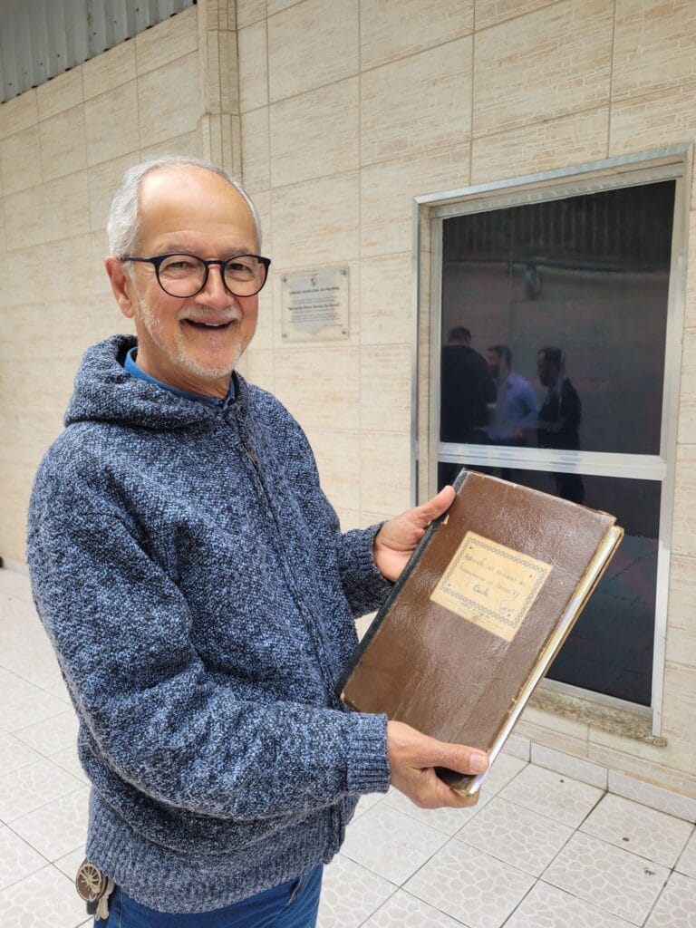 Semana passada ele esteve na Câmara de Vereadores, portando o que identifica como “Livro Tombo” da entidade.