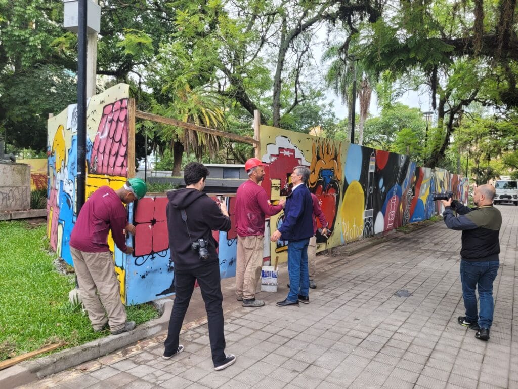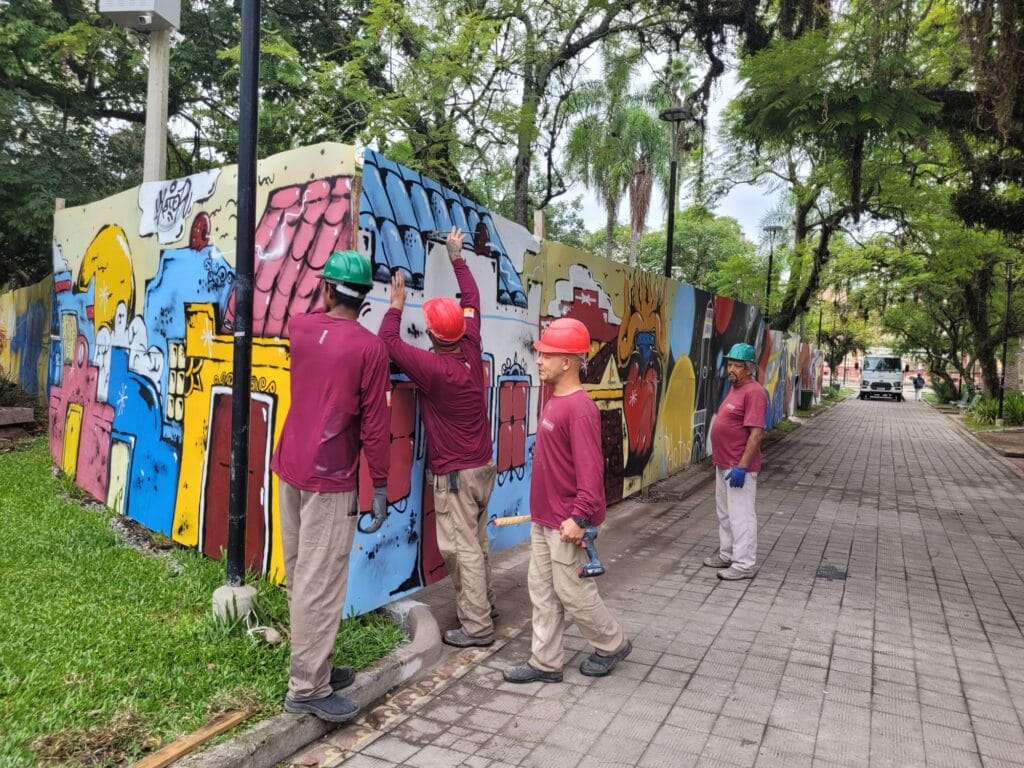 O grafitado, colorido e original tapume que protegia a obra dos novos sanitários na Praça Cel. Pedro Osório, já tem novo destino.