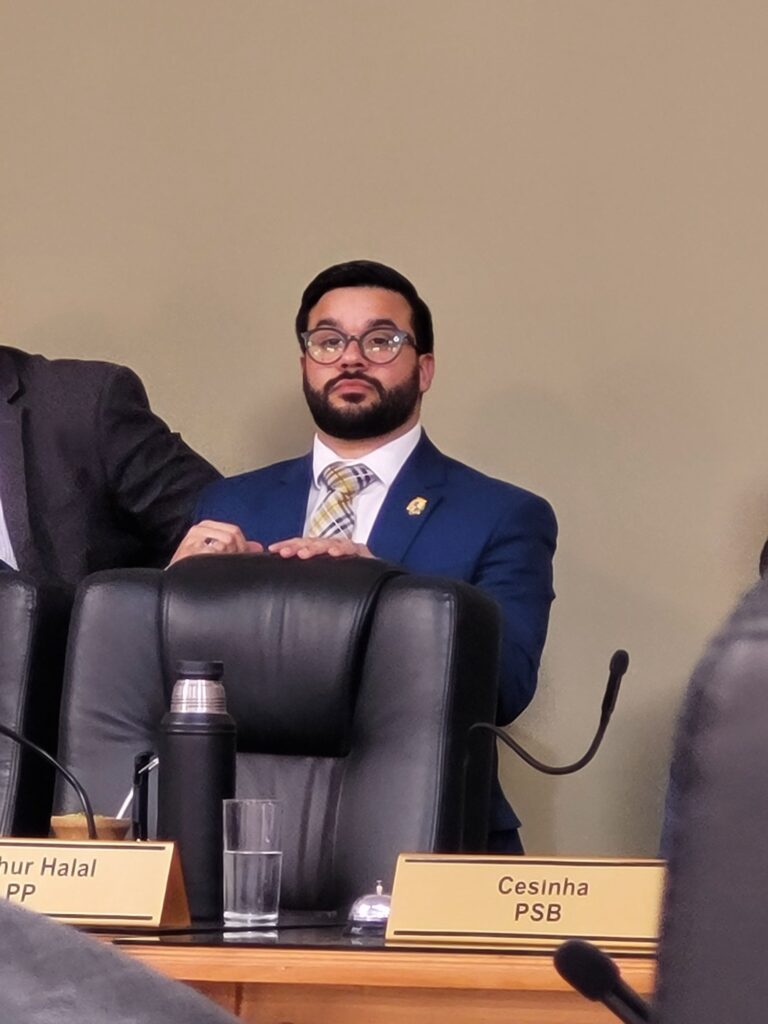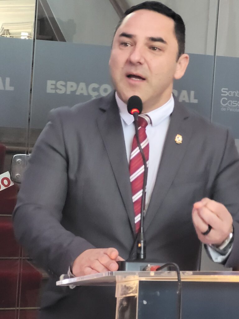 Presentes os vereadores Carlos Júnior (PSD), Daniel Fonseca (PSD), Marcelo Bagé (PL), Cauê Fuhro Souto (PV), Arthur Halal (PP), Michel Promove (PP), Rafael Amaral (PP), Cristiano Silva (União Brasil), Marcos Ferreira (União Brasil), Tauã Ney (PSDB), César Brisolara (PSB) e Éder Blank (PSD).