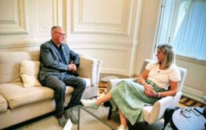 Ainda em Porto Alegre, o secretário Marcos Ferreira reuniu-se com a ex-prefeita e atual secretária de Relações Institucionais do Governo, Paula Mascarenhas (PSD).