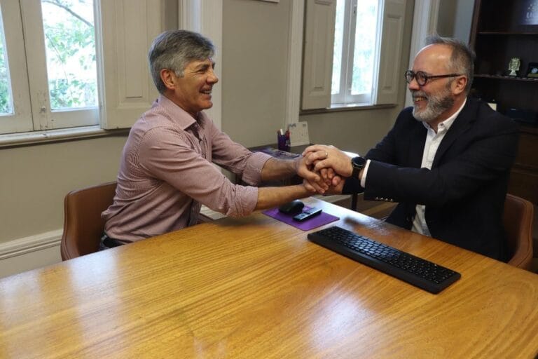 Encontro entre o reitor da Universidade Católica, José Carlos Pereira Bachettini Júnior e o prefeito Fernando Marroni (PT) hoje. Na pauta, parabenizar o reitor pela recondução ao cargo…