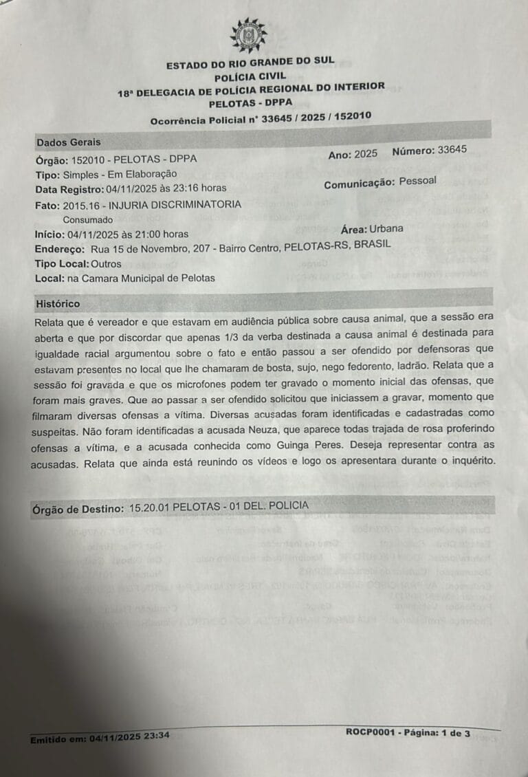 Adrenalina pura as últimas 24h na Câmara de Vereadores de Pelotas. Sem folga. Com direito a fortes discussões, agressões verbais, ofensas raciais, registro policial, discursos, apoios e aplausos.…