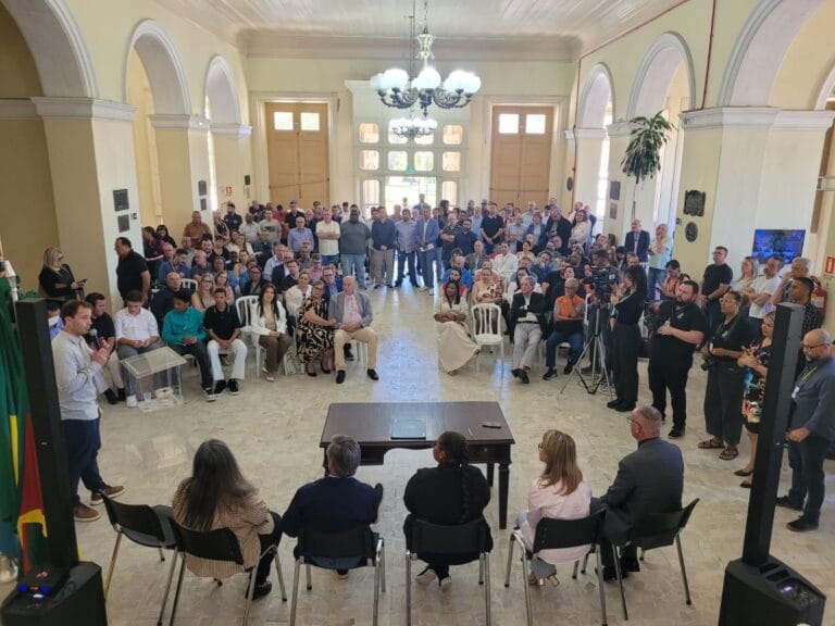 Nunca antes na história da posse de um secretário municipal, em Pelotas, o saguão da prefeitura ficou tão lotado. Todas as cadeiras foram ocupadas e muitos ficaram em…
