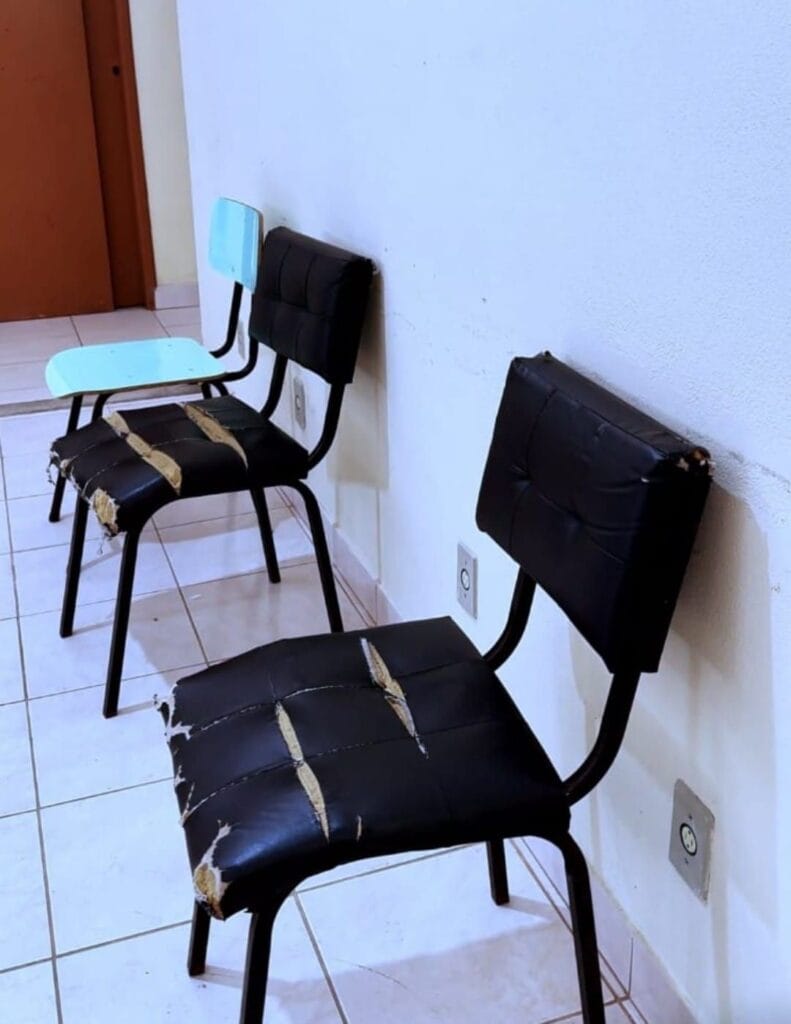 Com farto material fotográfico, Peixoto mostra problemas nas redes elétricas, mofo em paredes, cadeiras e outros móveis danificados, além da falta de insumos para que os atendimentos possam ocorrer.
