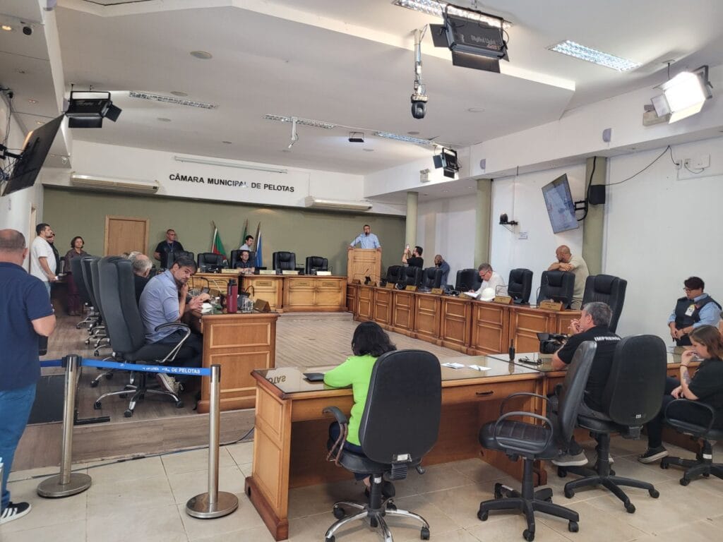 No plenário os vereadores Michel Promove, Paulo Coitinho, César Brisolara, Cristiano Silva, Júnior Fox, Marisa Schwarzer, Júlio Moura, Jurandir Silva e Ronaldo Quadrado.