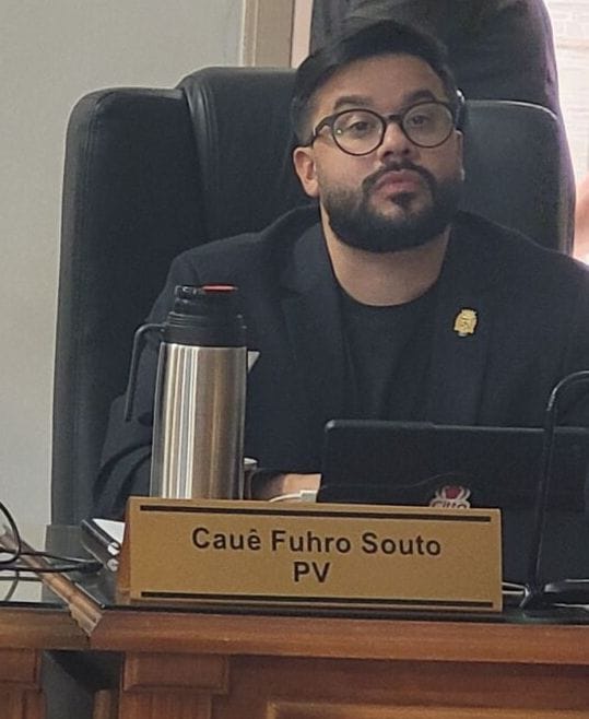 O principal alvo em sua manifestação, além do coletivo legislativo, é o vereador Cauê Fuhro Souto (PV).