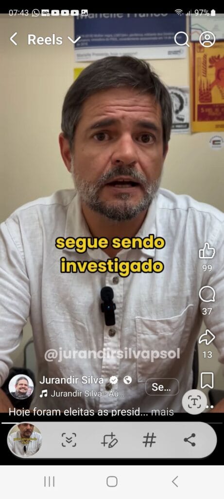 Tem um minuto e 16 segundos o vídeo que o vereador Jurandir Silva (PSoL) postou em suas redes sociais. Comenta o que aconteceu na Câmara na manhã de terça-feira.