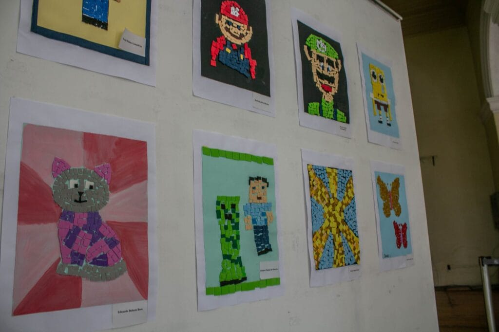 Trabalhos de alunos em mosaicos na exposição. Fotos: Manuela Santos/Secom-PMP