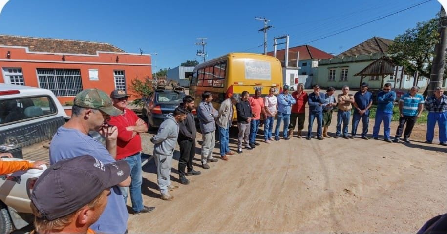 O mutirão reuniu o prefeito Fernando Marroni (PT), o secretário Anderson Schmidt e administradores distritais. O início pelo Quilombo é apontado como estratégico pela localização e produtores da fruta.