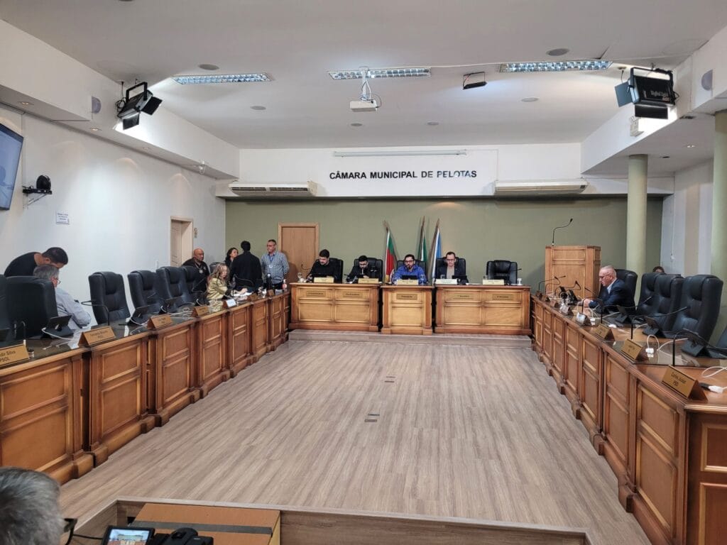 Iniciada a sessão da Câmara de Pelotas. Na presidência o vereador Marcelo Bagé (PL), devido a ausência do presidente, vereador Michel Promove (PP).