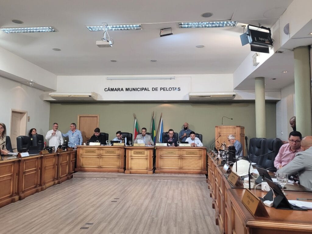 Reunião extraordinária da Câmara de Vereadores de Pelotas hoje pela manhã. Tudo em função da desfiliação do vereador Cauê Fuhro Souto do Partido Verde (PV).