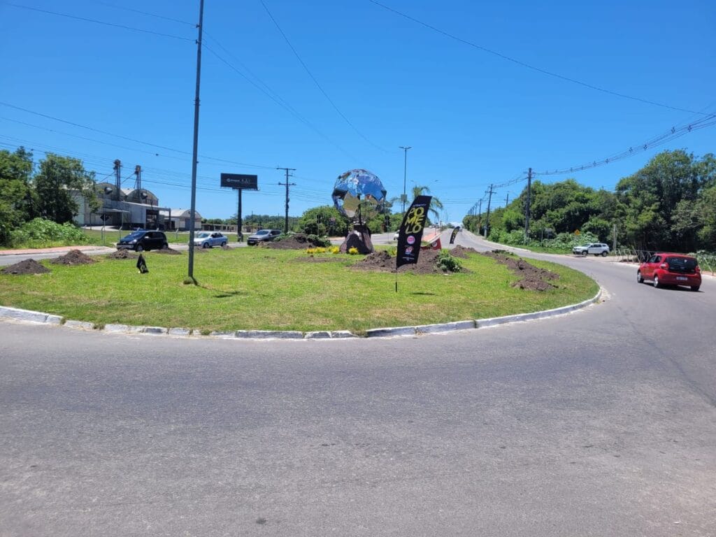 Mais uma etapa no projeto de paisagismo na rótula da avenida Ferreira Viana com a rua Comendador Rafael Dias Mazza, antes das pontes sobre o Arroio Pelotas, no caminho para o Laranjal.